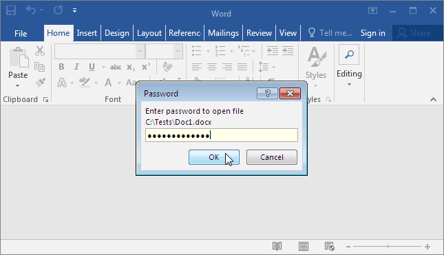 “Я забыл пароль открытия к Word файлу. Кажется это Word 2010 или 2013 – это docx файл. Могу я расшифровать его без пароля, как это описано в вашей заметке про разблокировку Word файлов?”